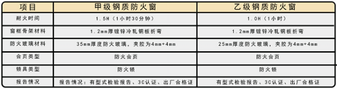 钢质防火窗具有一定强度使其足以保障构件完整性和稳定性的钢框架或木框架为基础原料。钢质防火窗达到GB16809-2008防火窗材料与配件,同时满足现行有关防火规范、验收标准及图纸设计要求。耐火极限甲级不小于1.5小时,乙级不小于1.0小时,丙级不小于0.5小时。