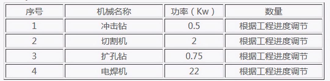 5) 机械配备情况