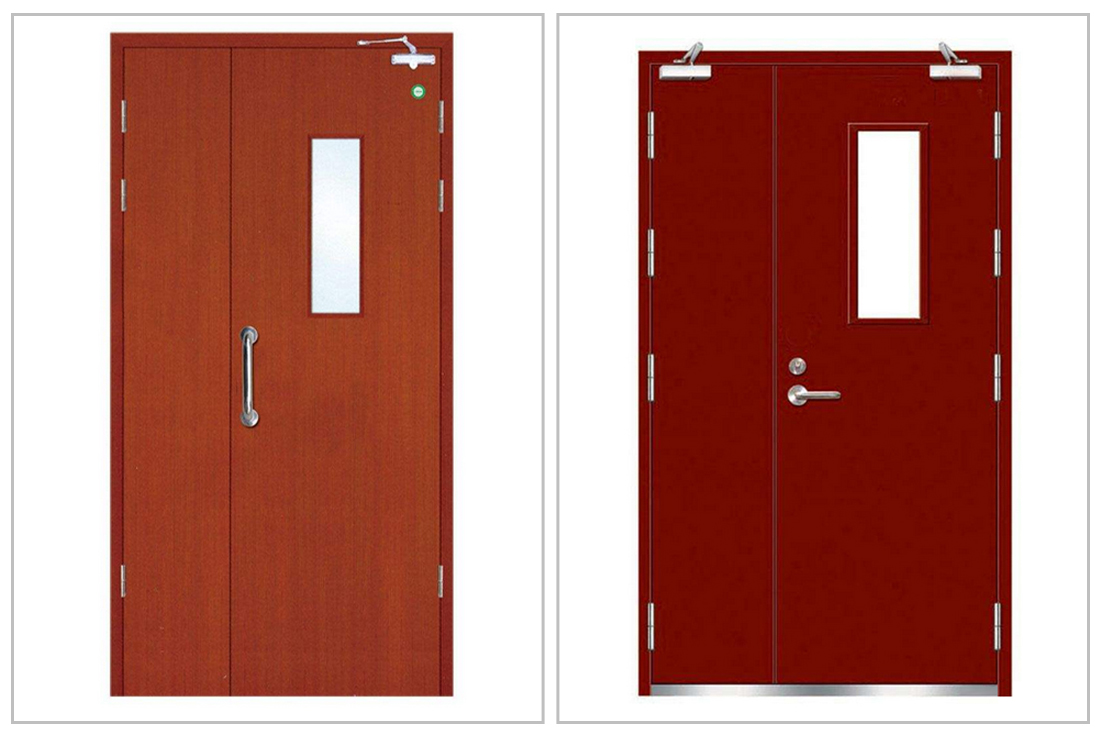 采用难燃木材或难燃木材制品作门框、门扇骨架、门扇面板,门扇内填对人体无毒无害、节能环保的防火隔热材料、并配以防火五金配件(和防火玻璃),达到国家标准GB12955-2008要求、完整性和隔热性。